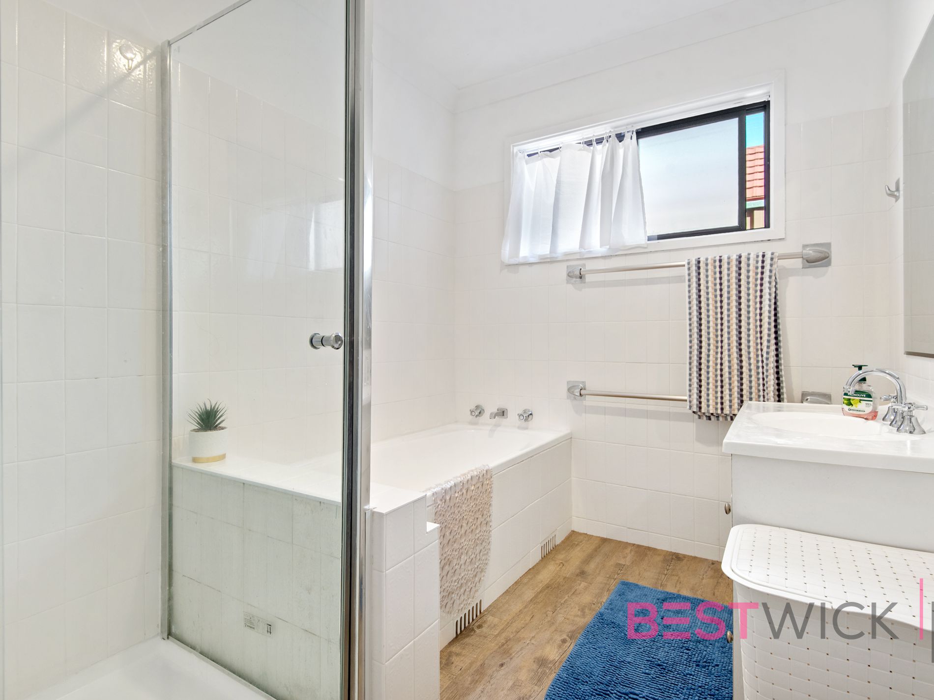 - Bathroom features seperate shower and bath