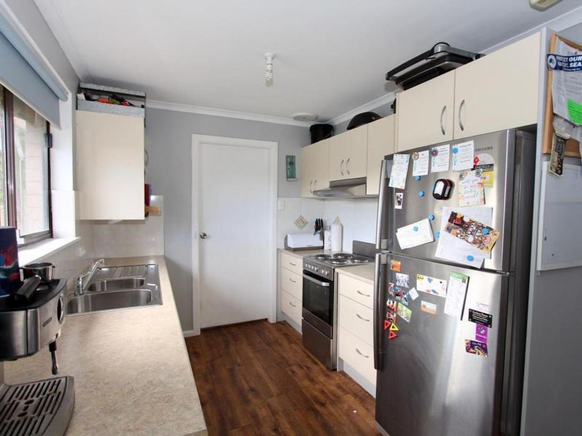 * Floating laminate timber-look flooring through living & kitchen & carpet to bedrooms